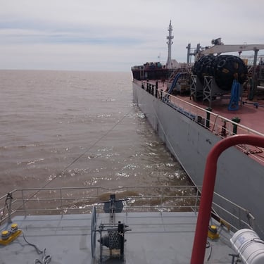 Transporte de víveres y repuestos a buques en Rada La Plata. Traslado de comisiones, técnicos, talleres y tripulantes.